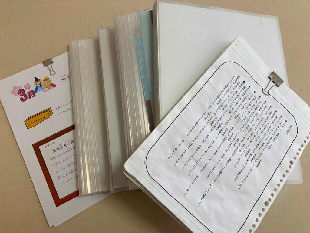 暗唱テキストを有効活用されている方が作られたファイルの写真です。お出かけの時に一冊持っていくと、知識が増えるとおっしゃっていました。